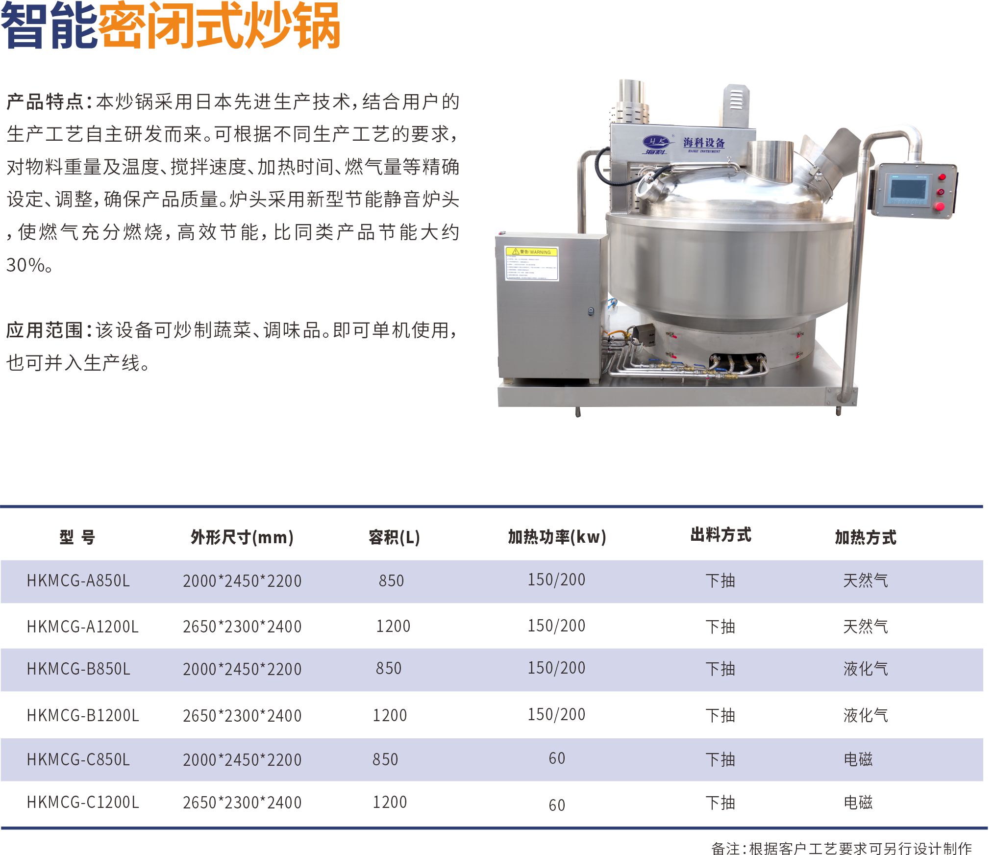 本炒鍋采用日本先進(jìn)生產(chǎn)技術(shù),結(jié)合用戶的生產(chǎn)工藝自主研發(fā)而來??筛鶕?jù)不同生產(chǎn)工藝的要求,對(duì)物料重量及溫度、攪拌速度、加熱時(shí)間、燃?xì)饬康染_設(shè)定、調(diào)整,確保產(chǎn)品質(zhì)量。爐頭采用新型節(jié)能靜音爐頭,使燃?xì)獬浞秩紵?,高效?jié)能,比同類產(chǎn)品節(jié)能大約30%。